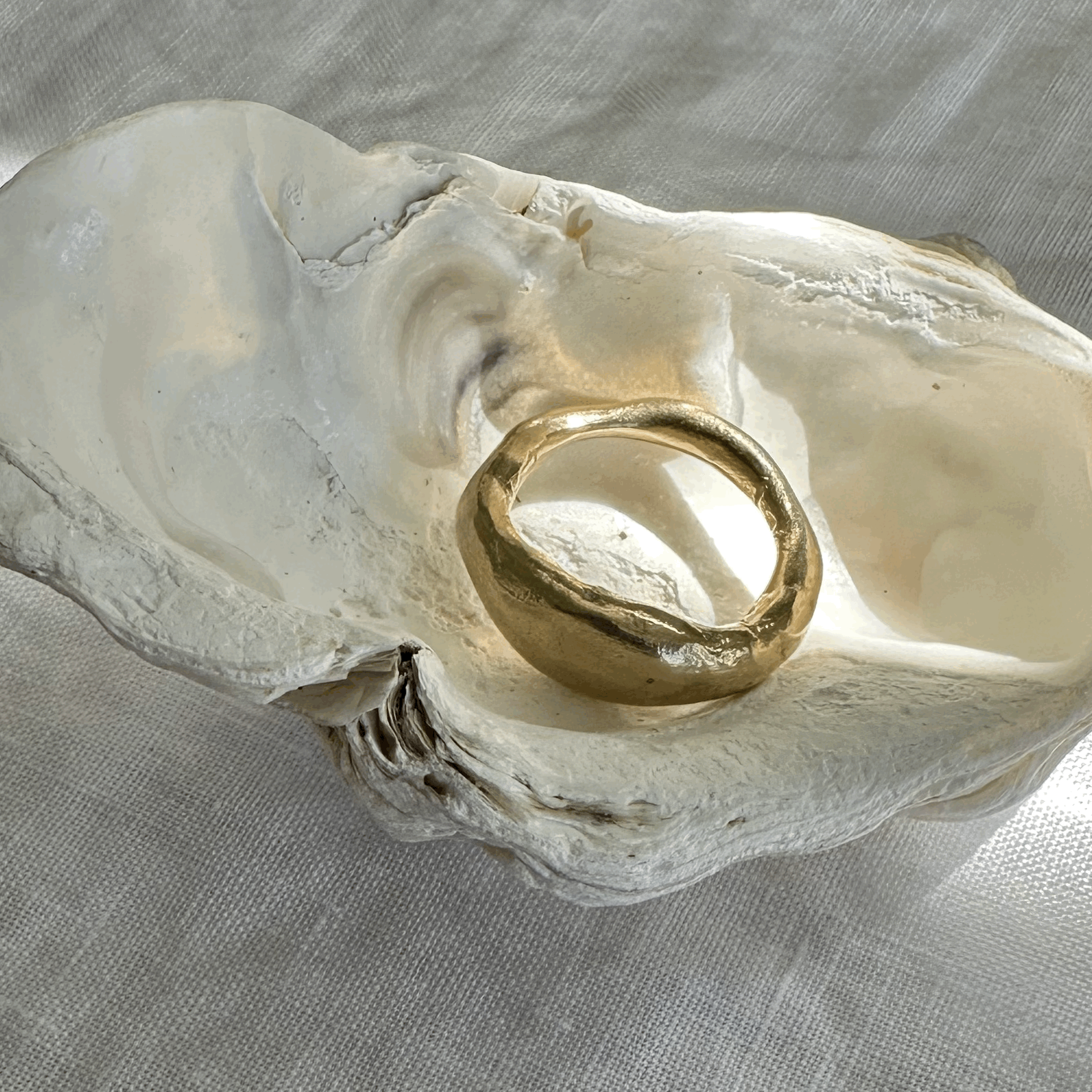 The MUD RING is inspired by the organic flow of liquid mud found on the estuary shores local to me - once I have carved the ring I hold the thicker part over the flame of a candle and allow the wax to melt and move as it will.